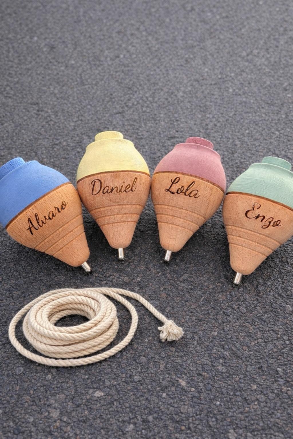 Además de ser un recuerdo especial, también se convierte en una actividad divertida durante la celebración, ya que los niños pueden jugar y competir para ver quién consigue que su peonza gire durante más tiempo.